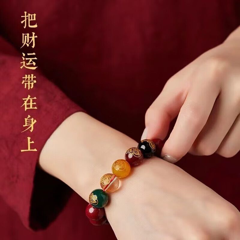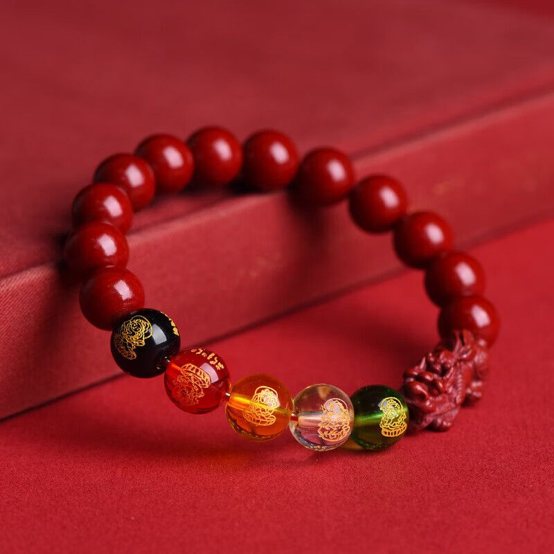五路財神硃砂手串轉運珠招財手鍊男女禮物已開關貔貅五路財神手鍊 貔貅五路財神手串
