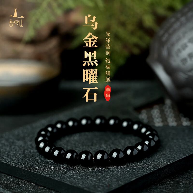 普陀山烏金黑曜石手串男補水事業護身男女情侶手串護身符生日禮物