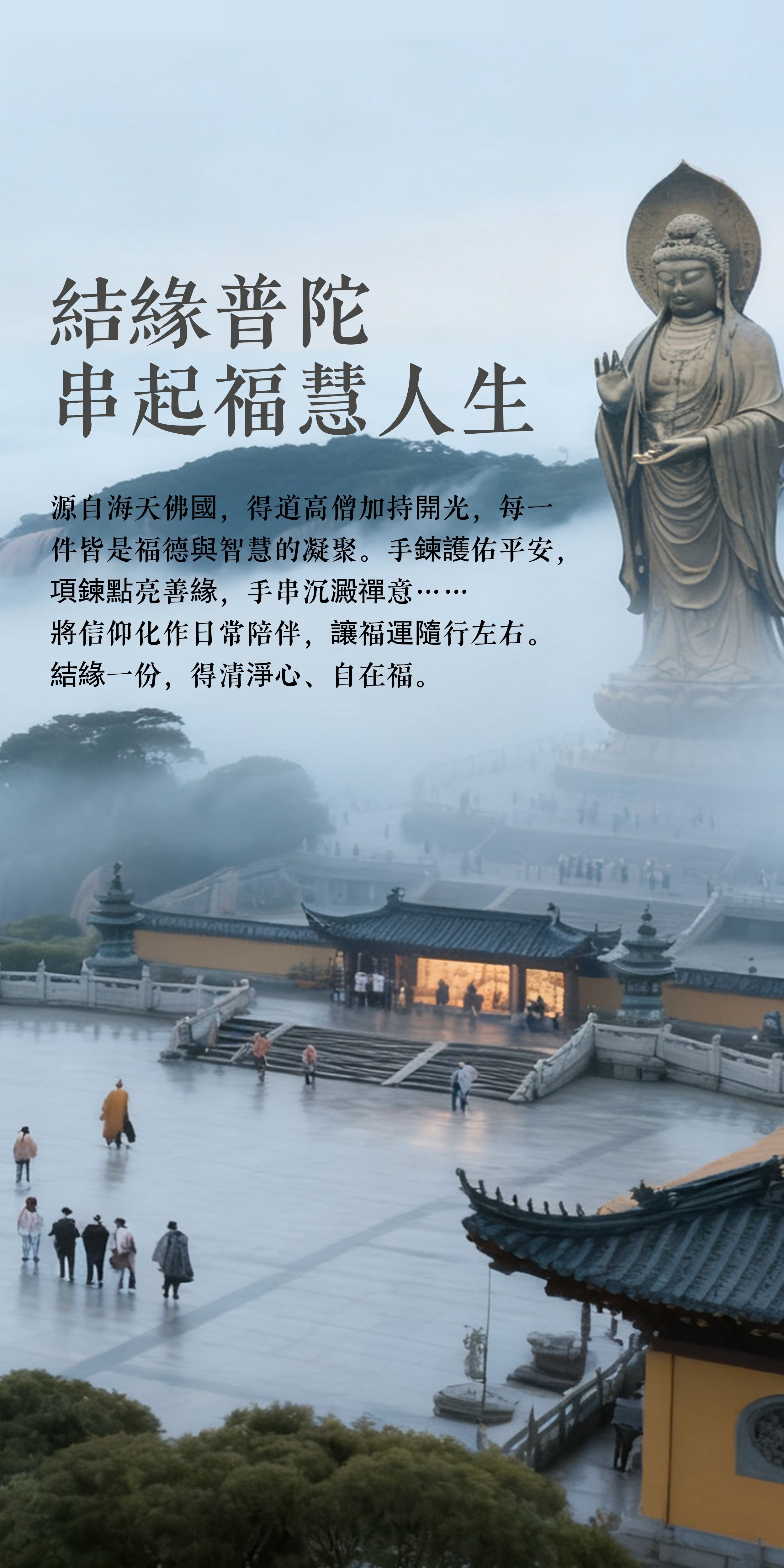 腕間一縷金光,流轉普陀祥雲。此鏈承佛前清淨梵音,由大師開光加持,不為逆轉時空,只為淨化心念。當煩惱盤繞時,輕轉珠鍊,便是提醒:心光常明,萬般皆順。讓每一次轉動,都成為轉向安寧的契機。