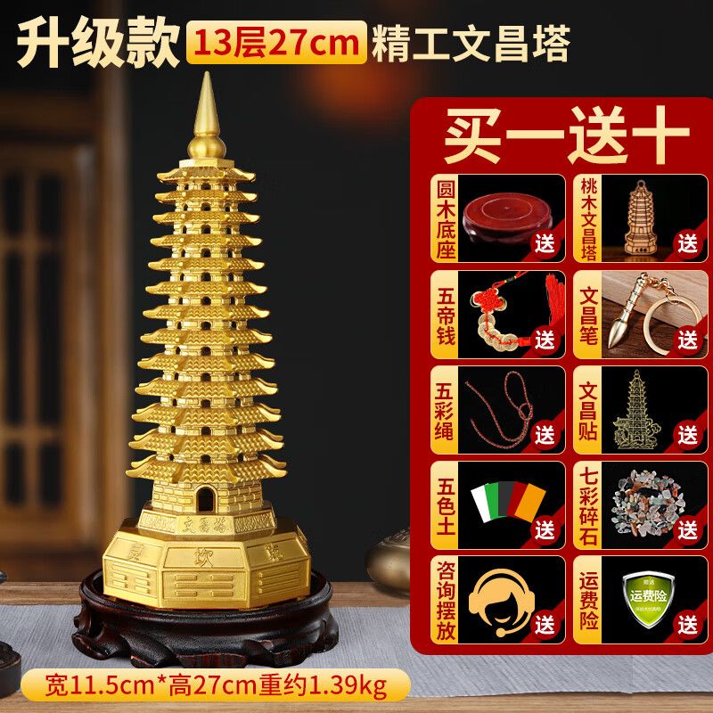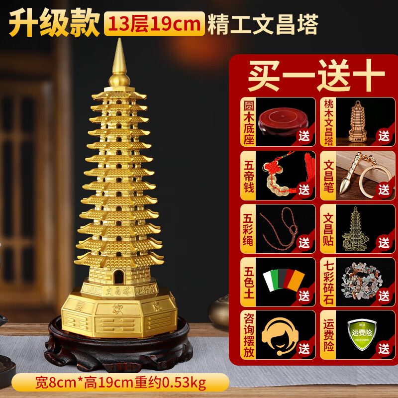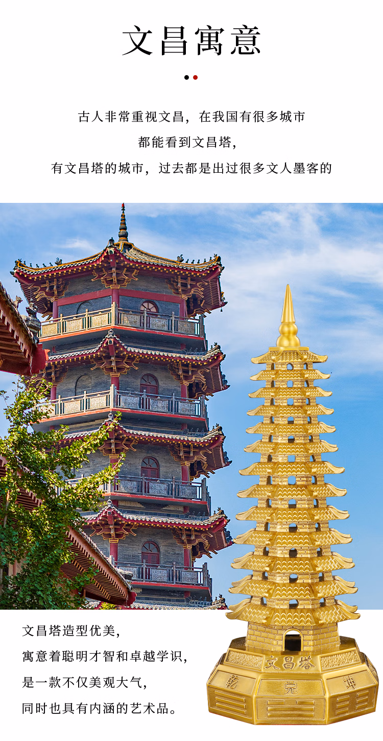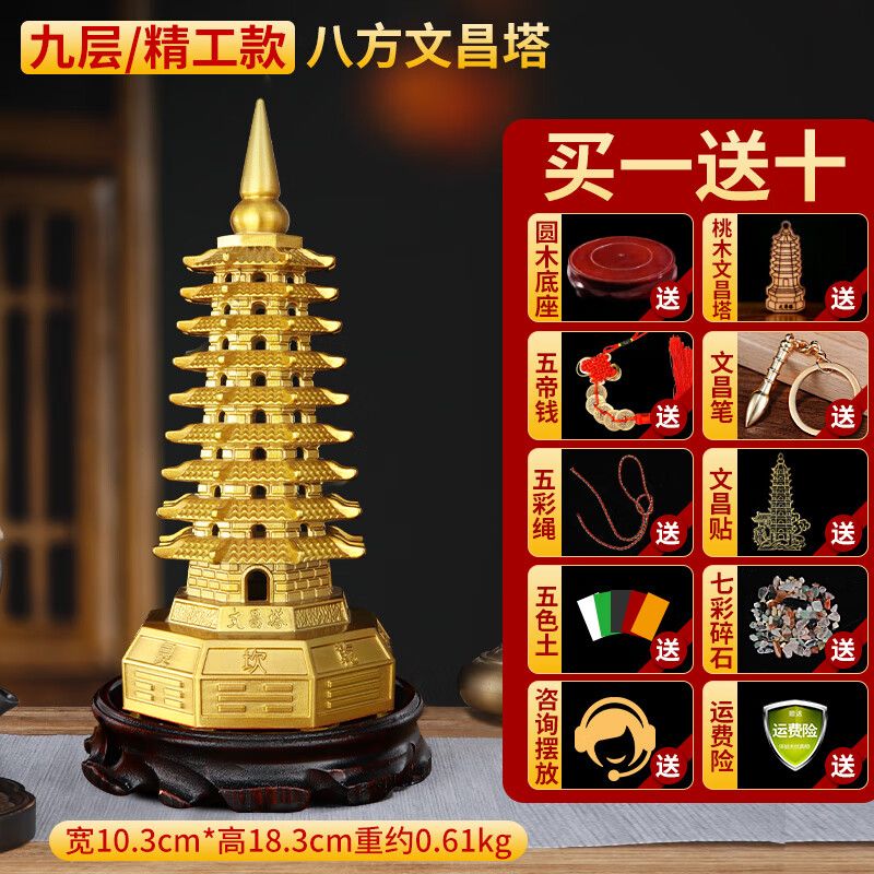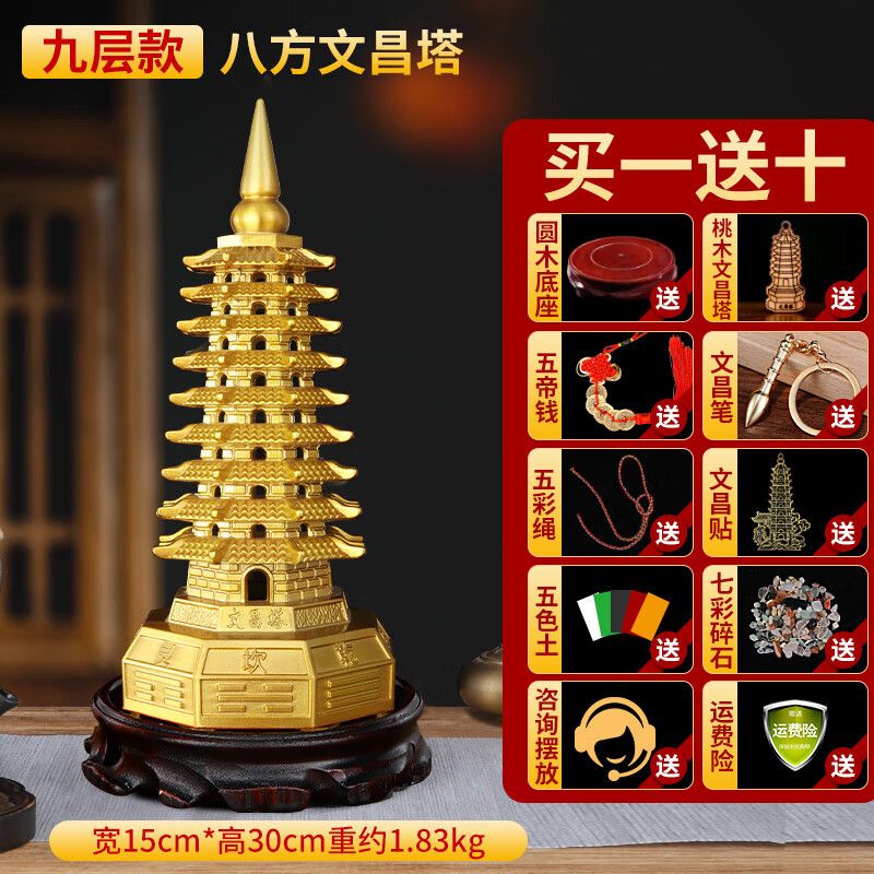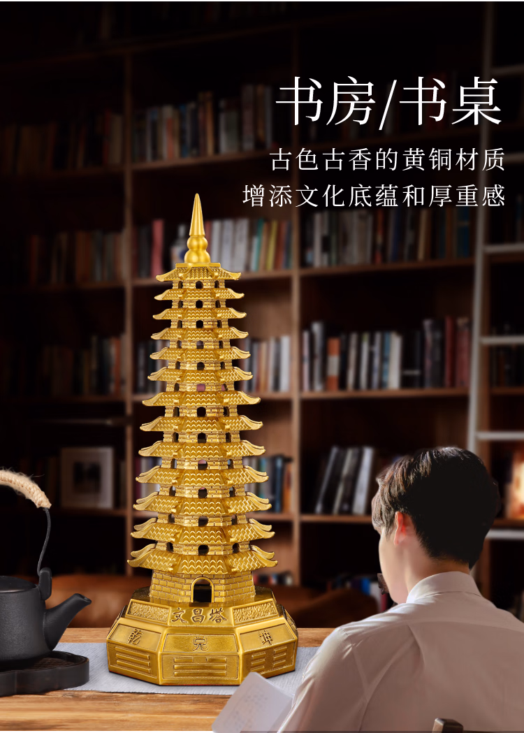 明恩純黃銅文昌塔擺飾八方文昌塔九層十三層書房文峰塔旺文勵志禮物