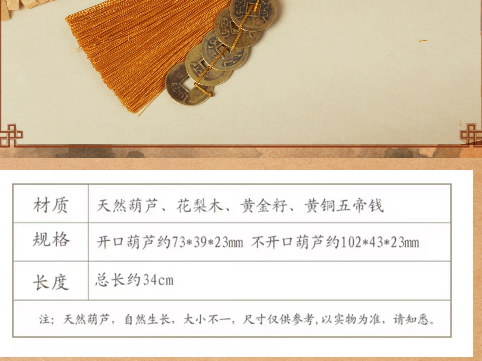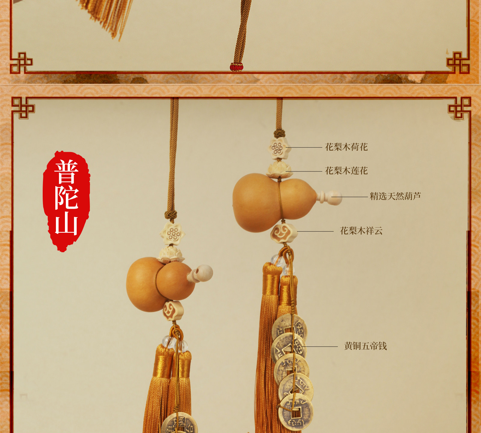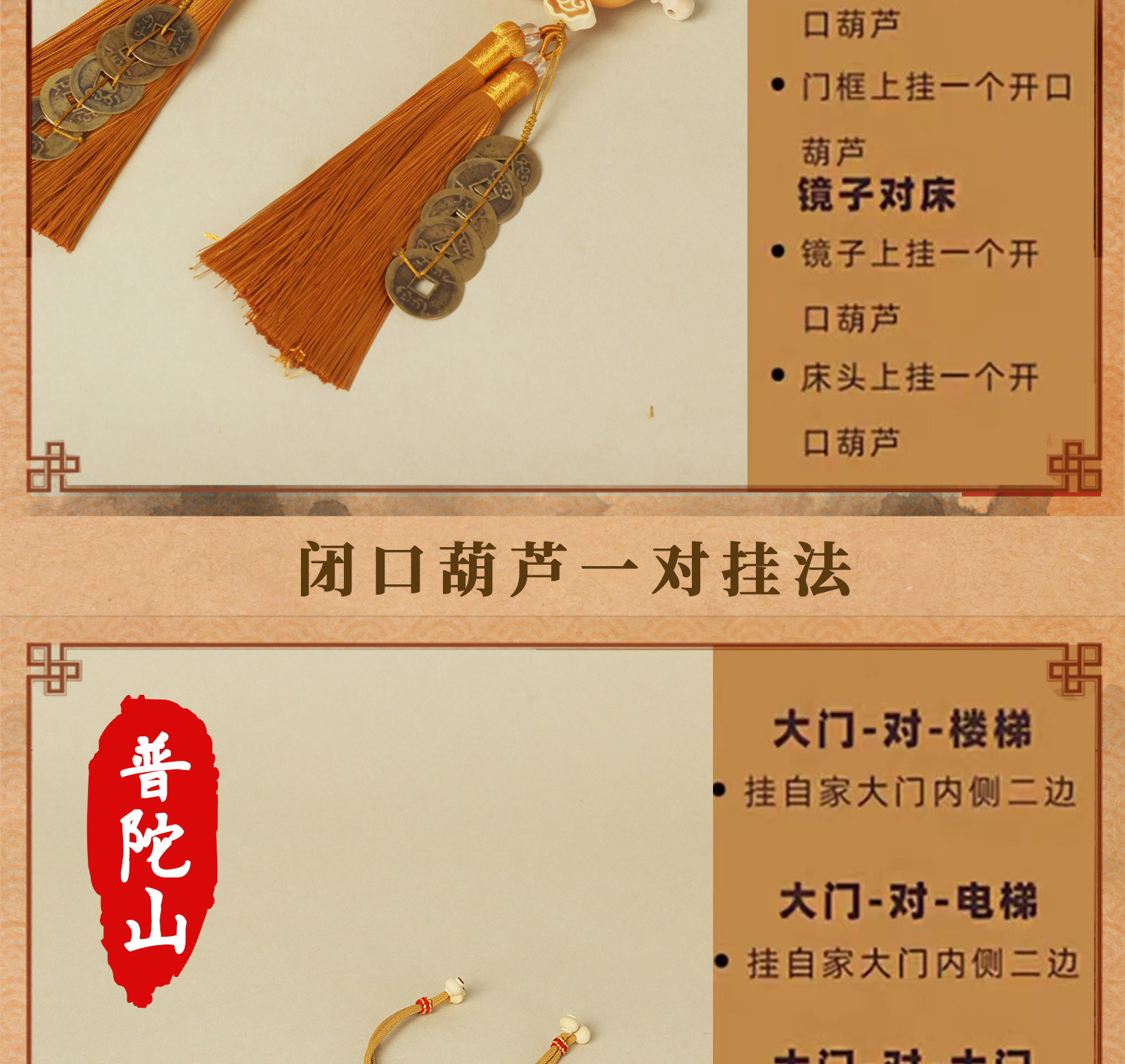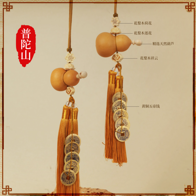 普陀山五帝錢掛件平安招財開過鎮上宅光天然葫蘆門對門官方旗艦店