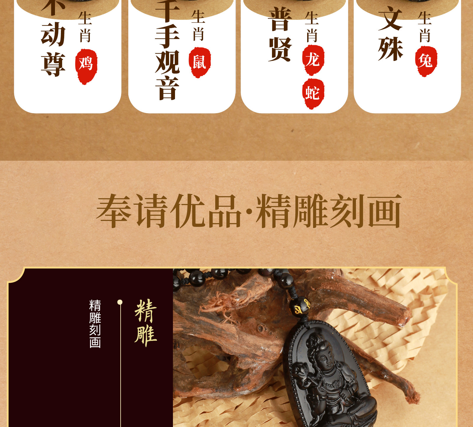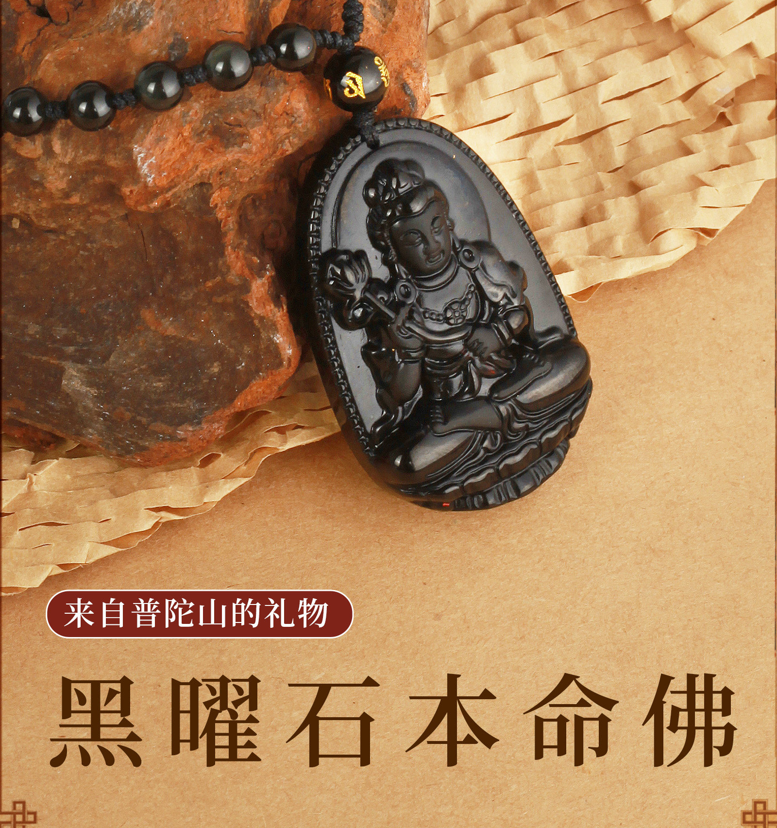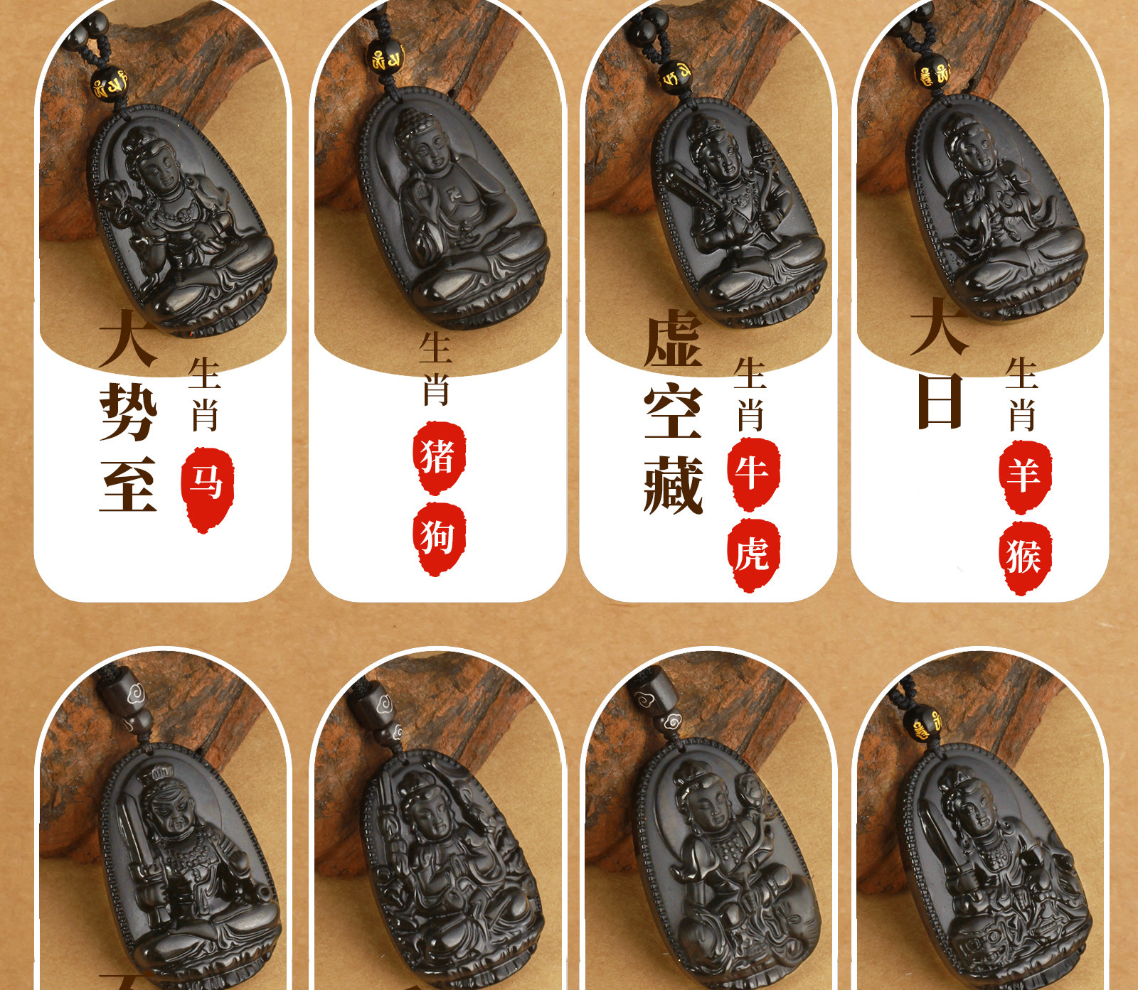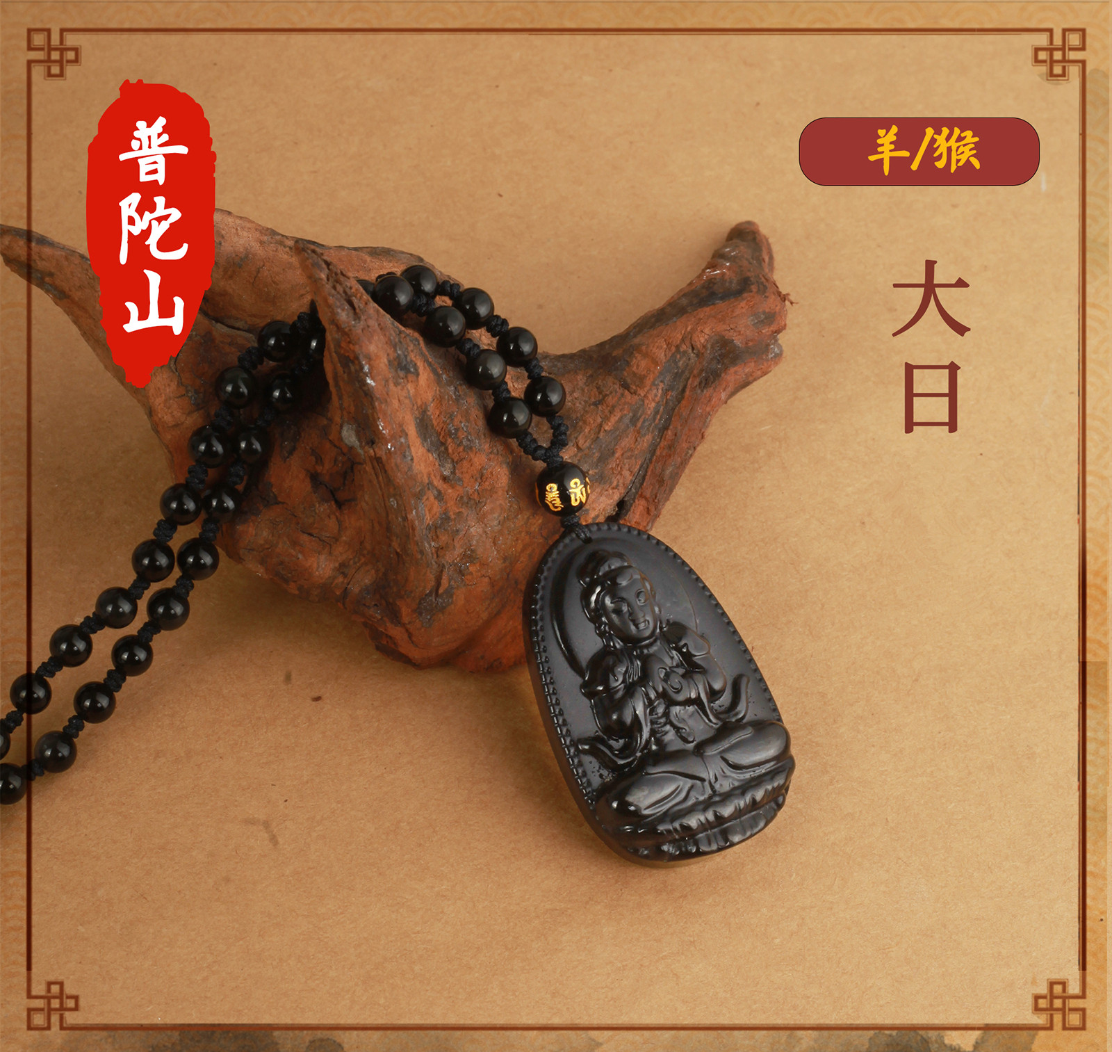天然黑曜石【羊、猴】大日如來【吊繩款】