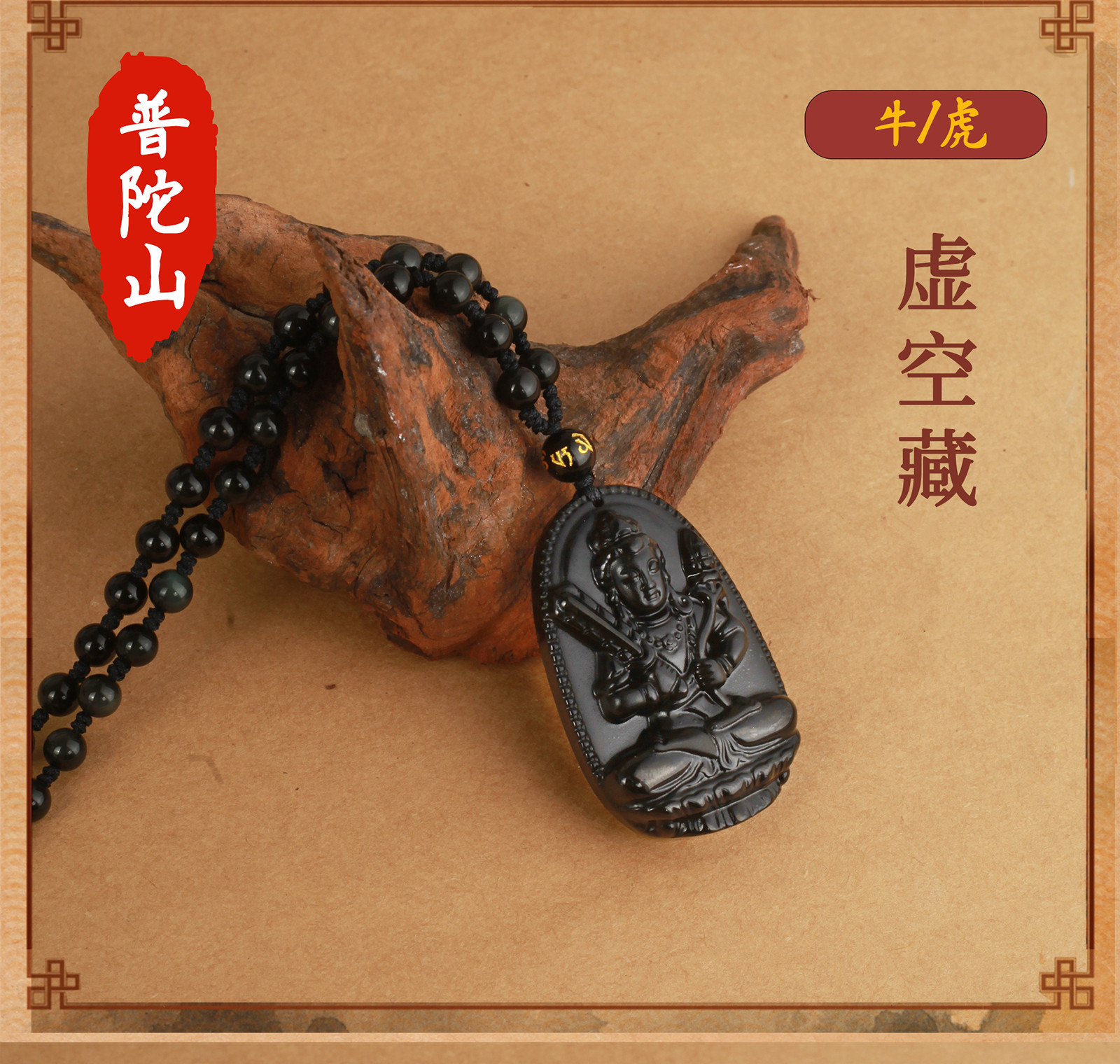 天然黑曜石【牛、虎】虛空藏【吊繩款】