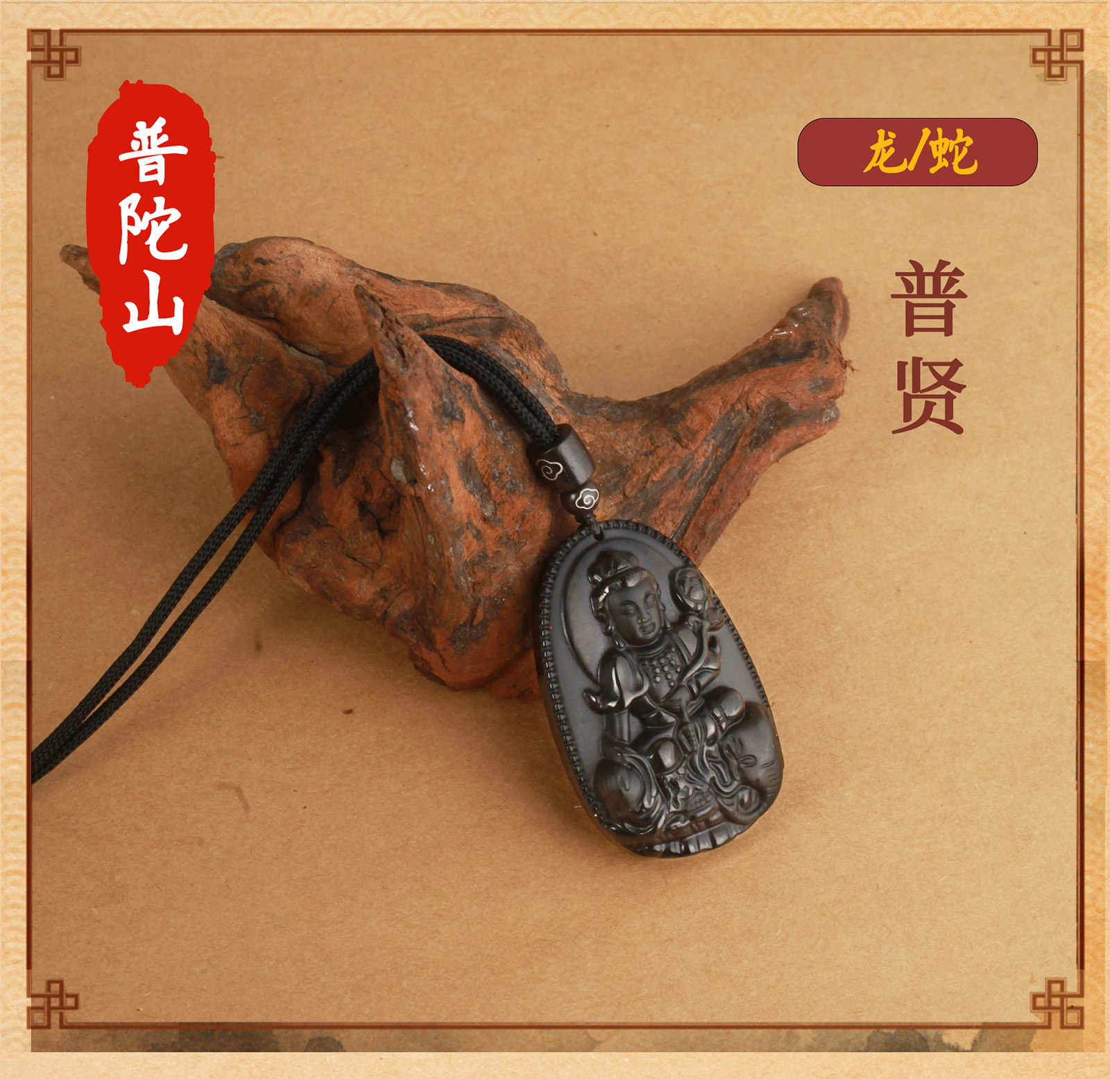 天然黑曜石【龙、蛇】普贤菩萨【吊绳款】