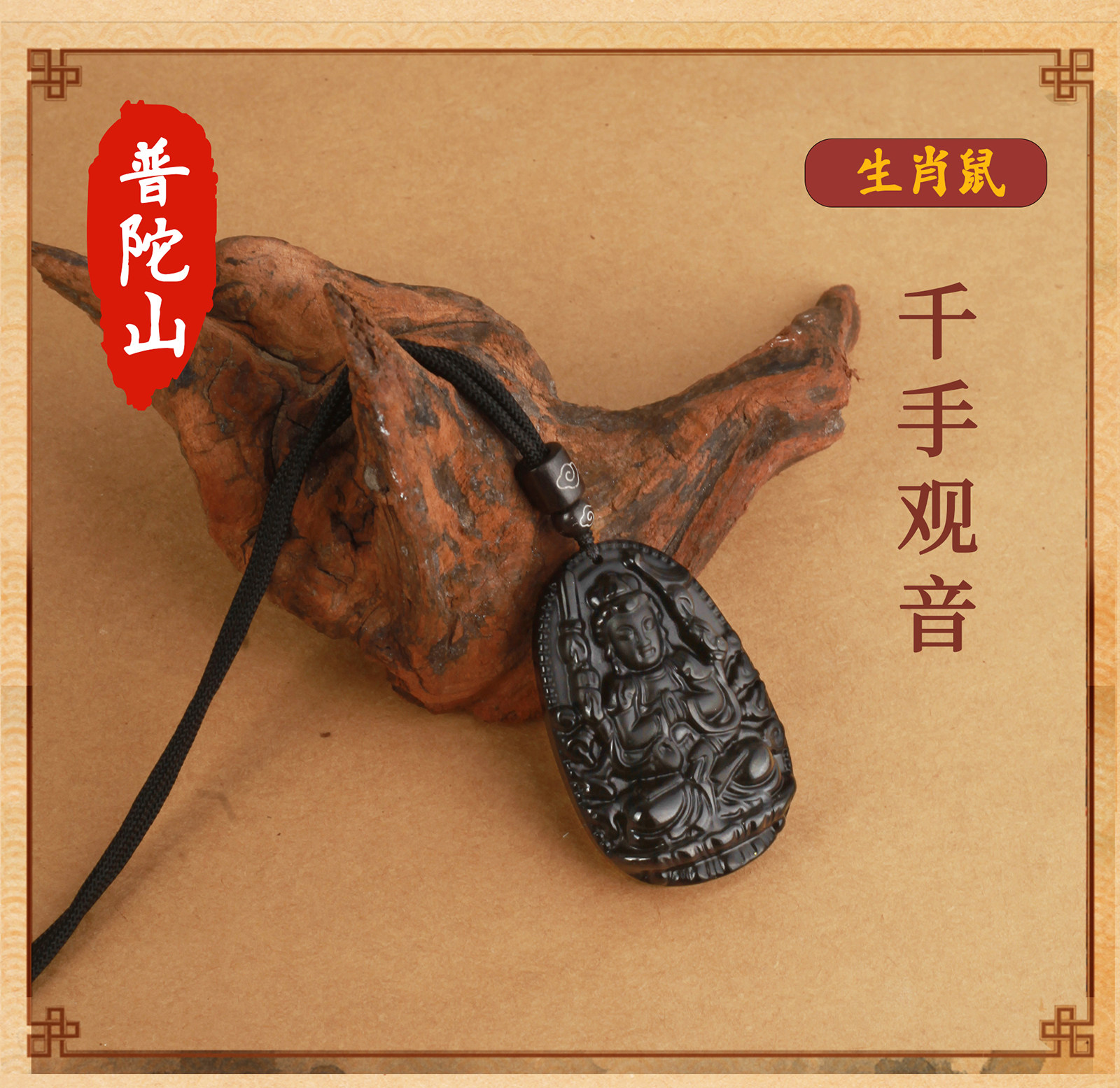 天然黑曜石【鼠】千手觀音【吊繩款】