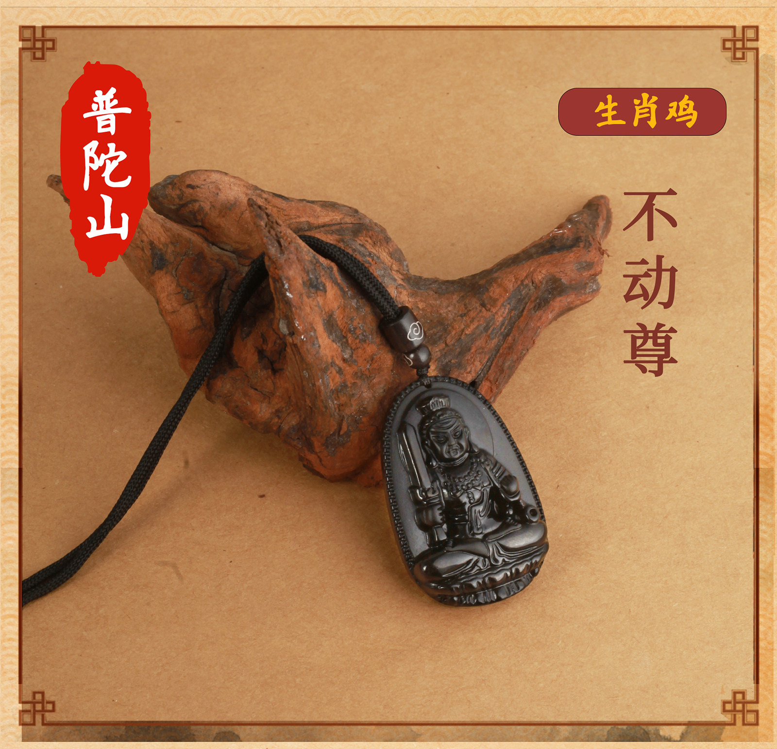 天然黑曜石【雞】不動明王【吊繩款】