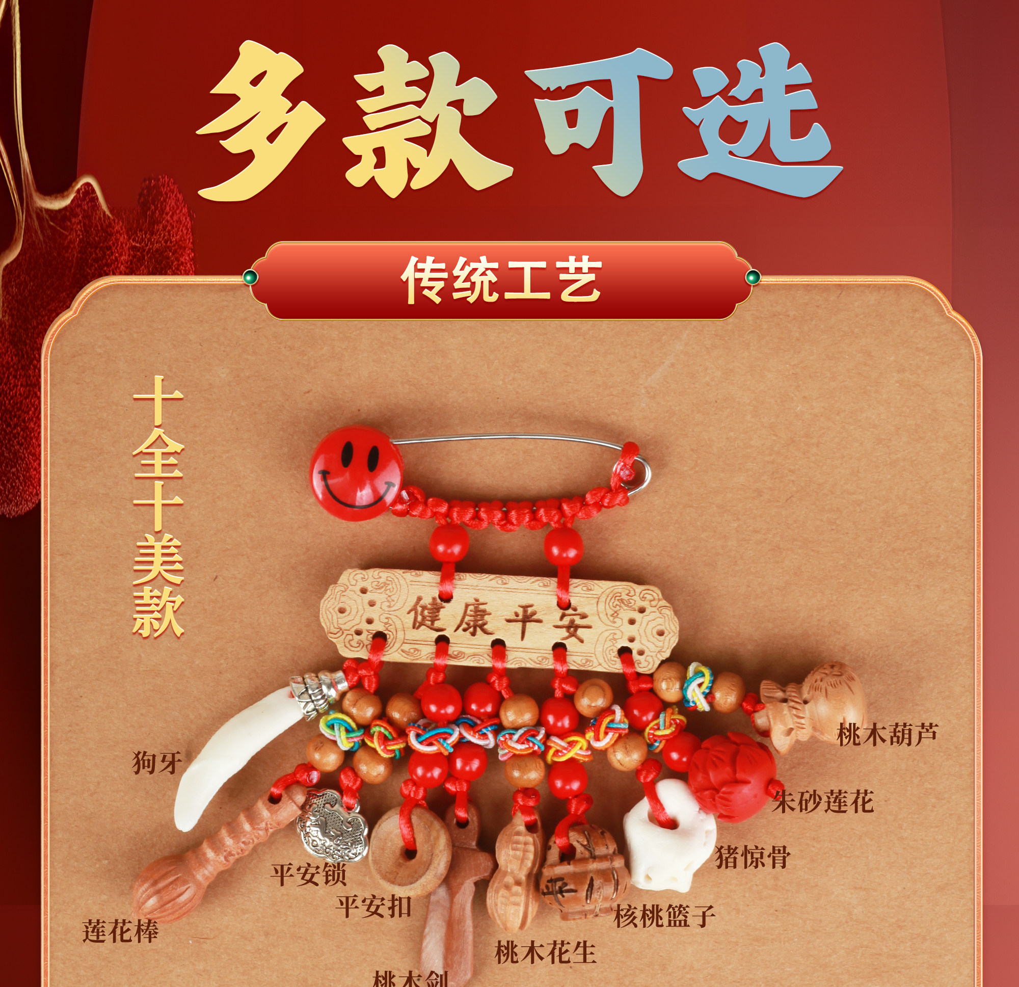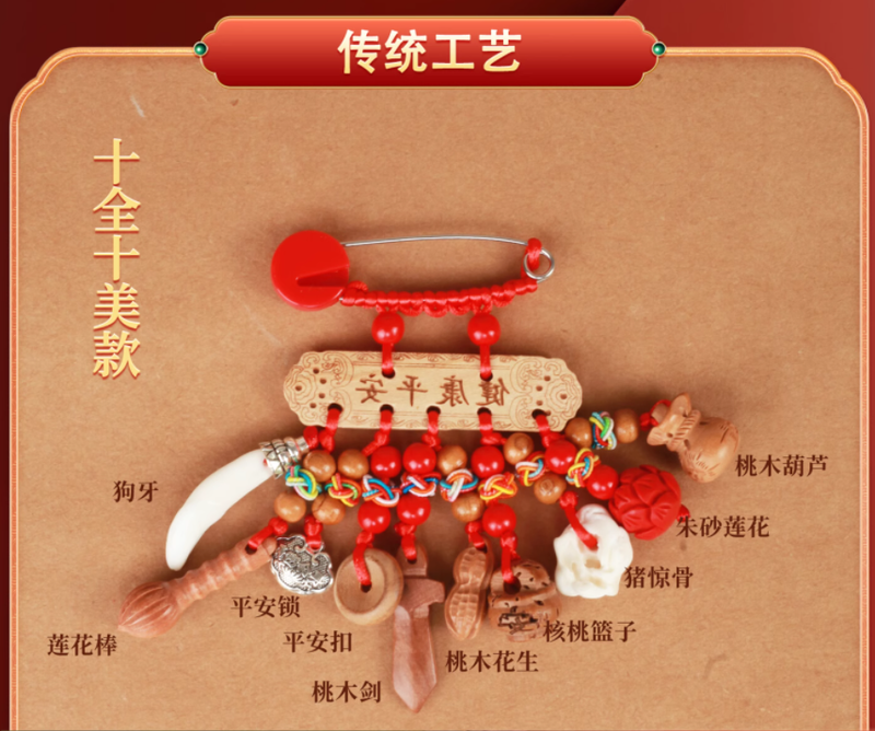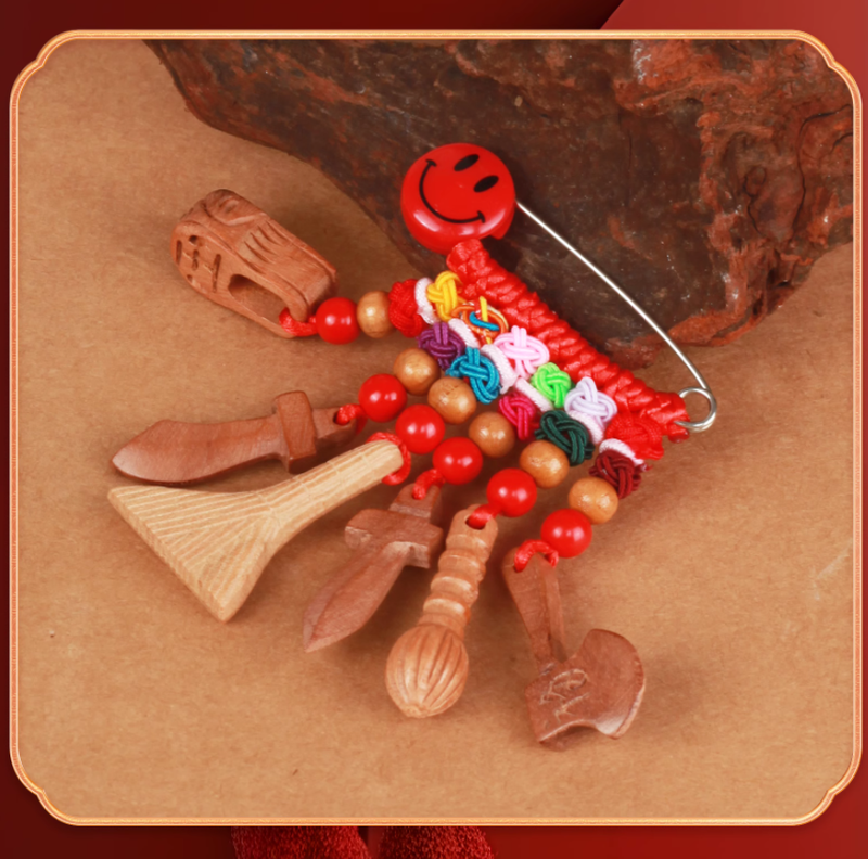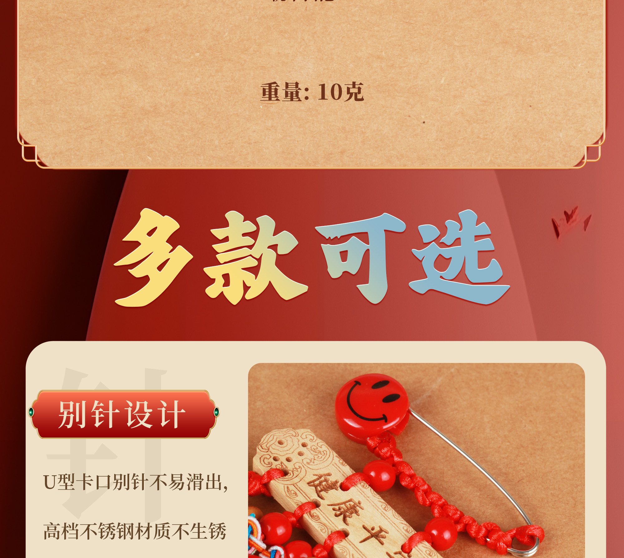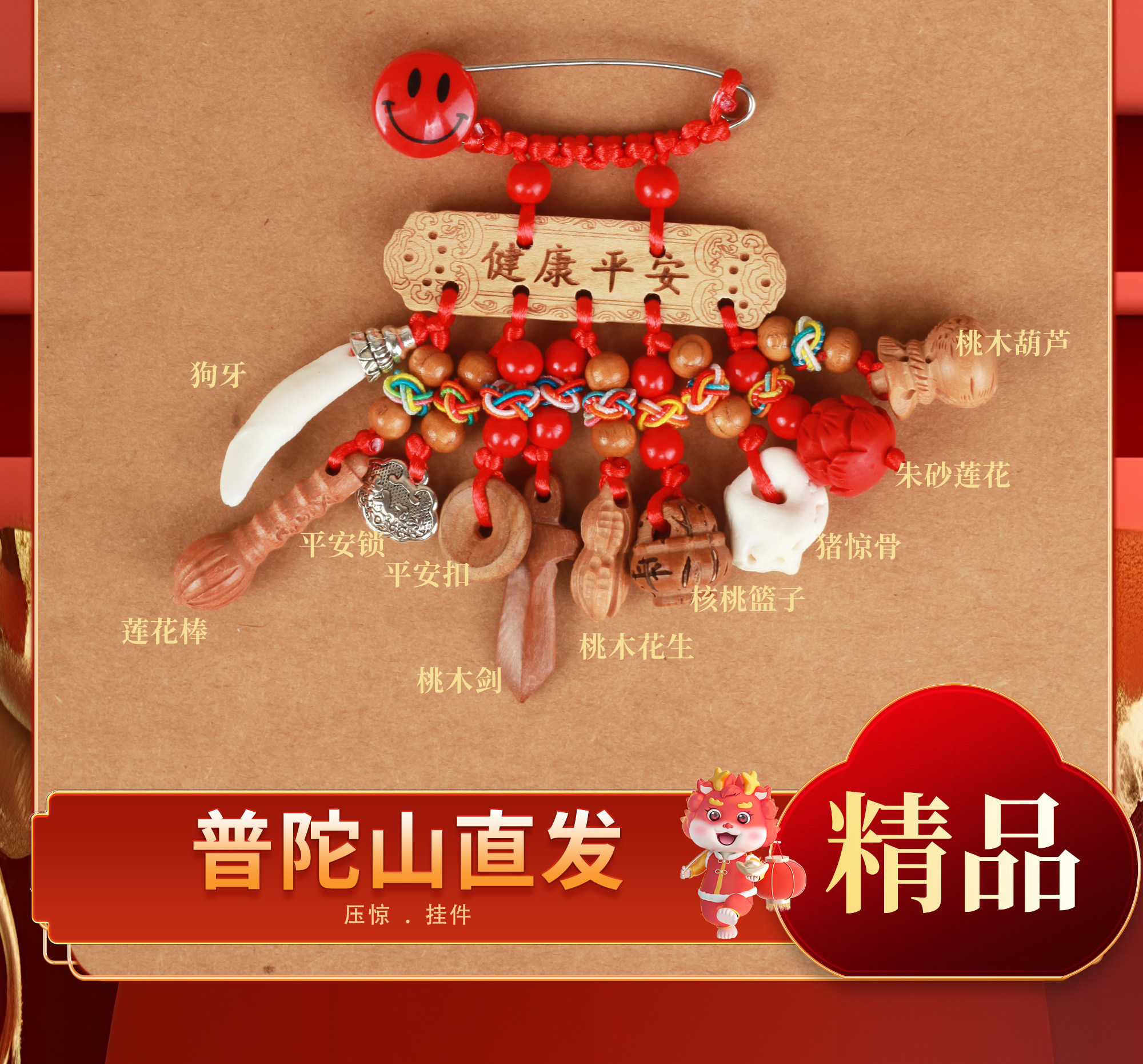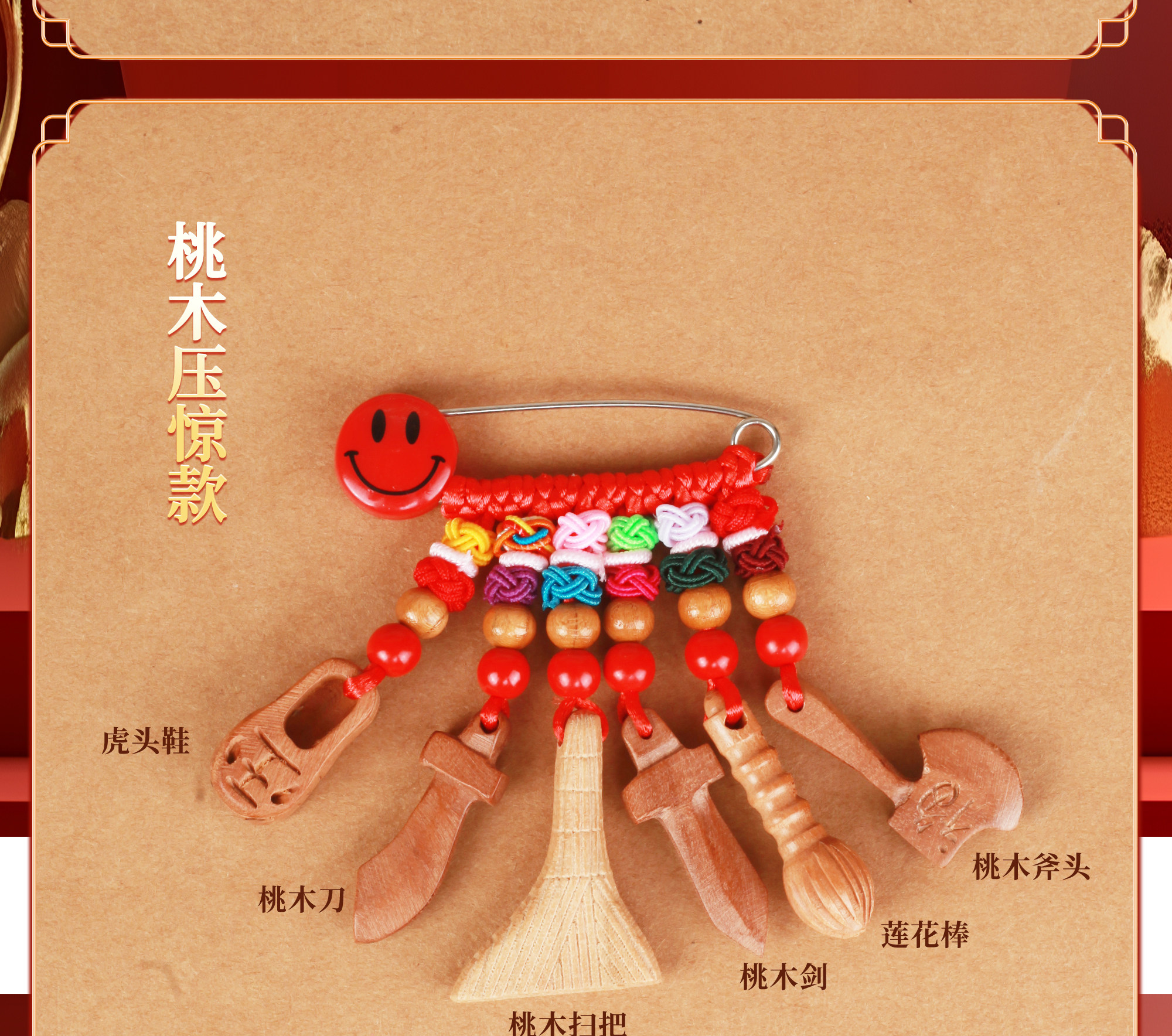 普陀山孕婦別針嬰兒壓驚外出龍蛇馬寶寶防驚跳平安護身符桃木別針