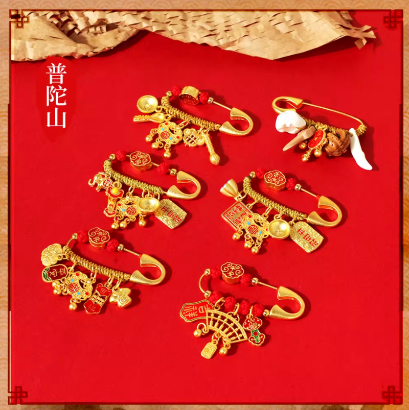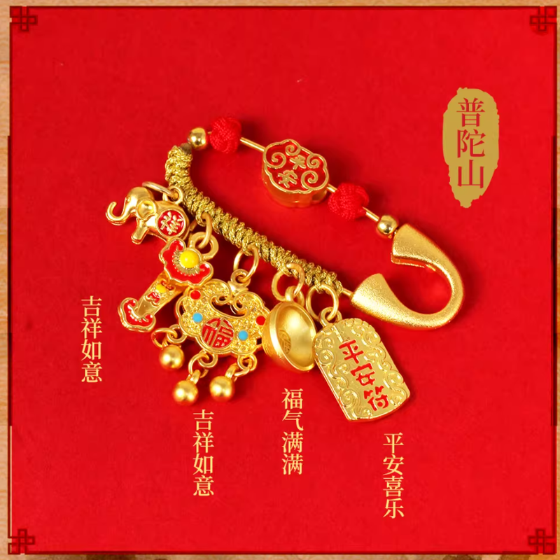 普陀山孕婦孕媽別針龍蛇馬寶寶防驚嚇平安壓驚狗牙桃木護身符