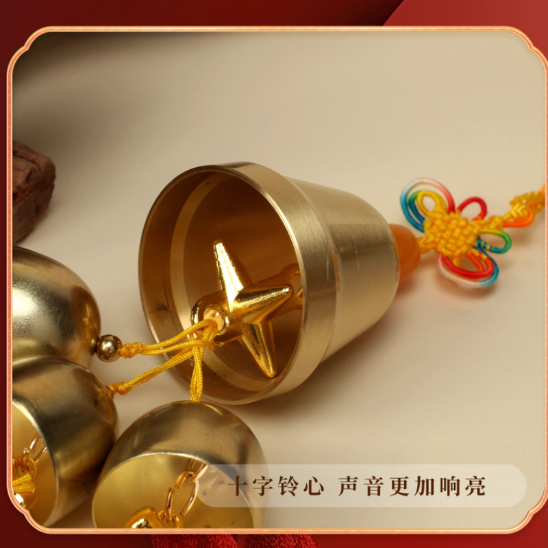 普陀山祝福發出風鈴掛飾陽台客廳室內一大六小銅鈴純銅掛件平安鈴