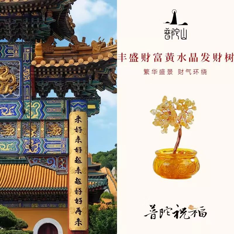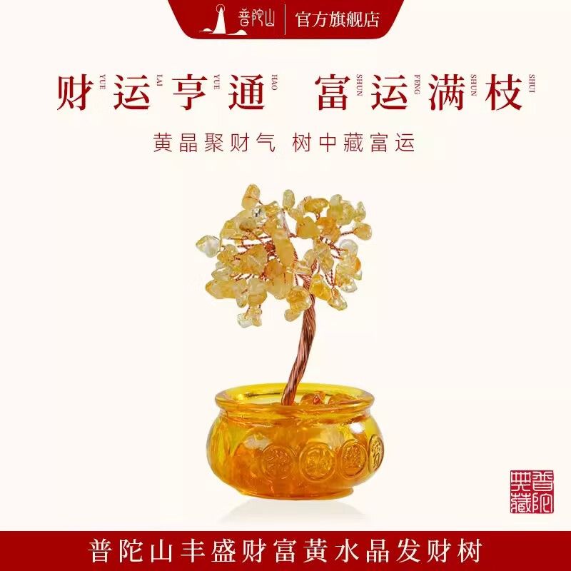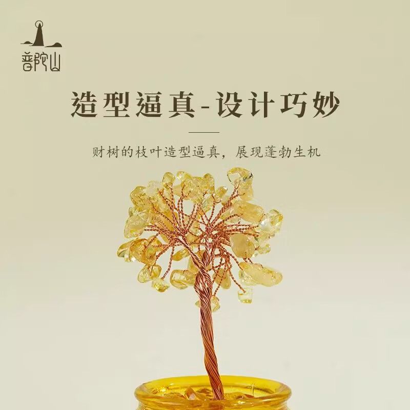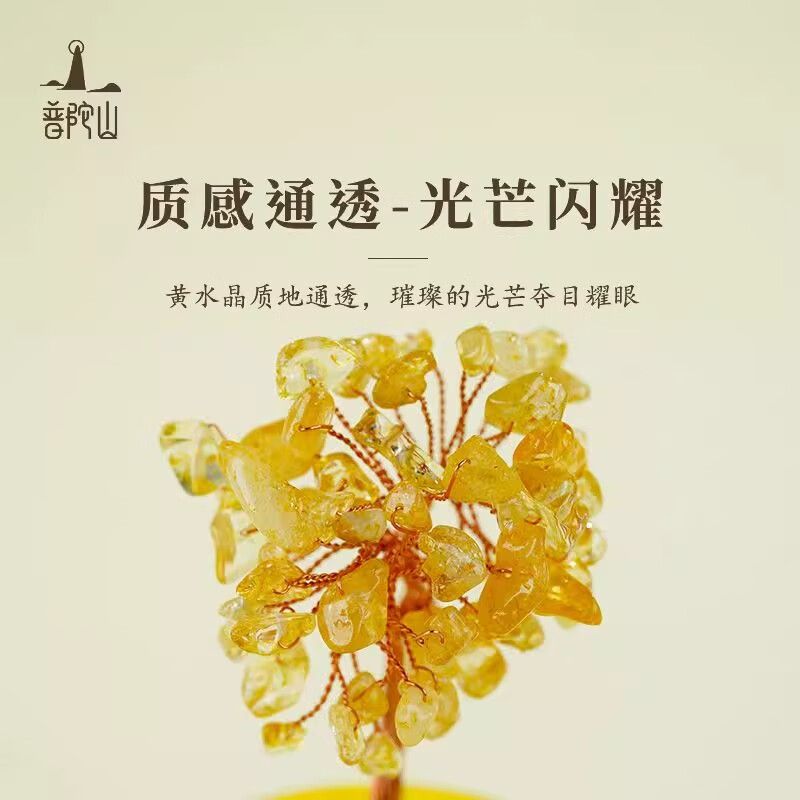 普陀山黃水晶發財樹擺飾汽車內裝擺飾風水客廳桌上型車內擺飾高端大氣