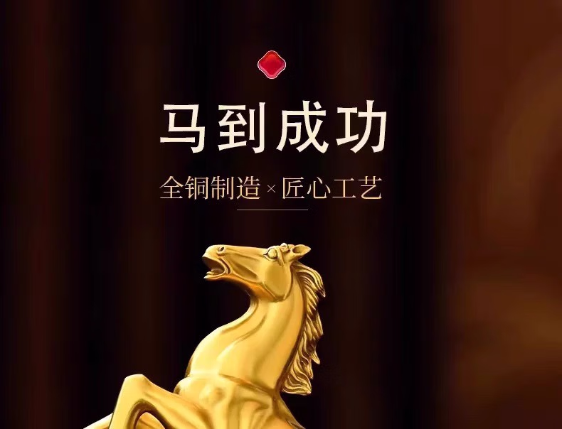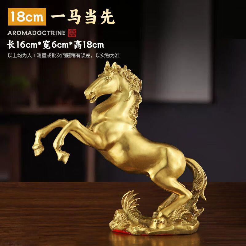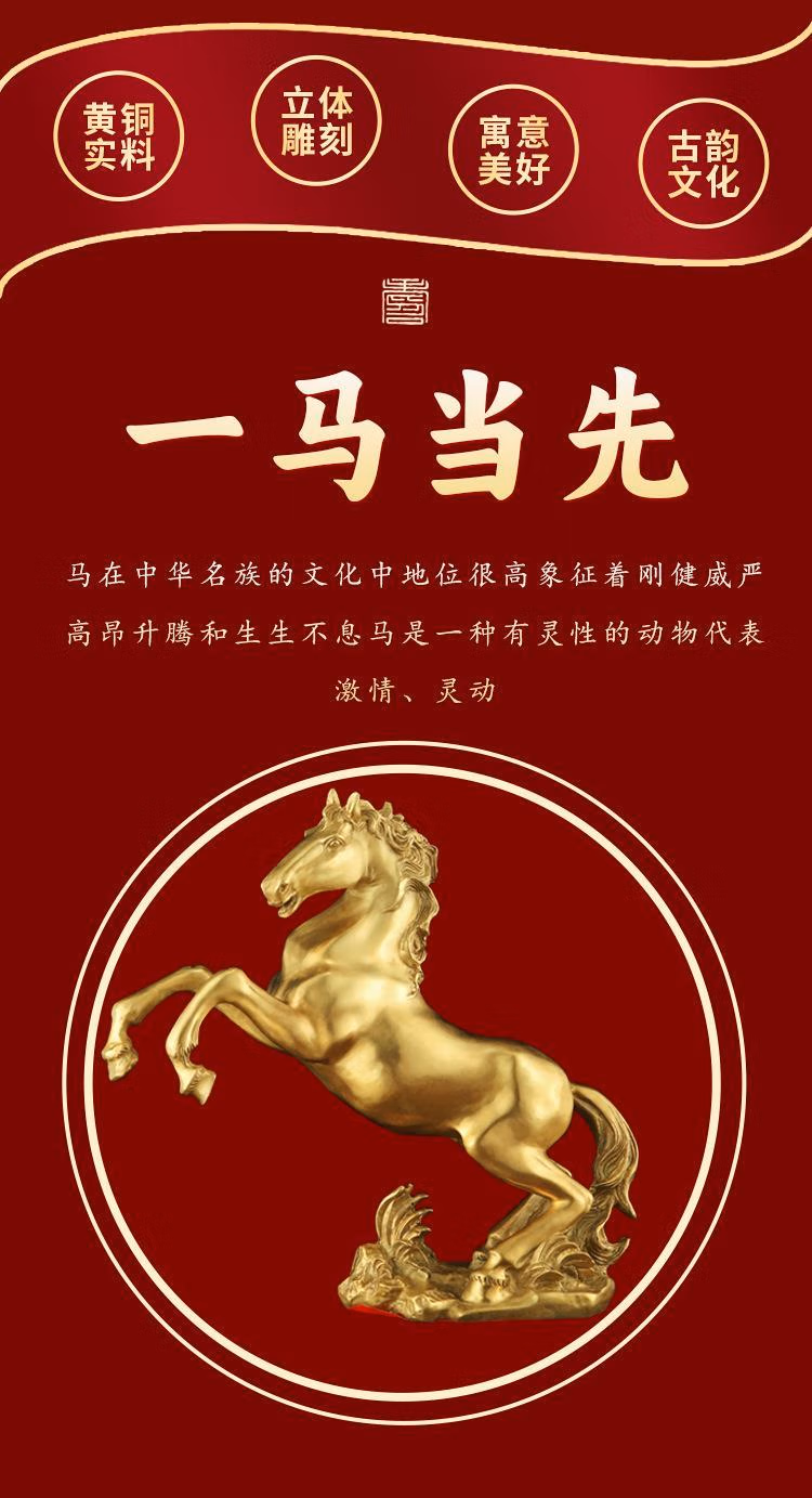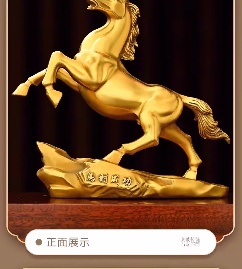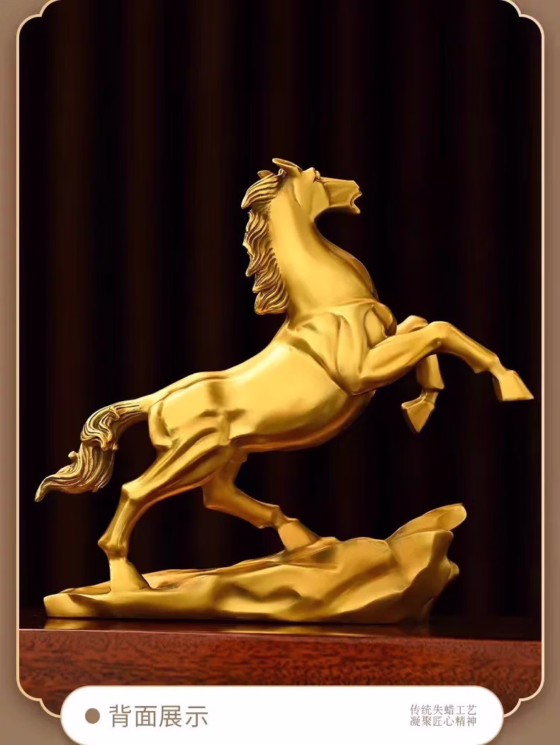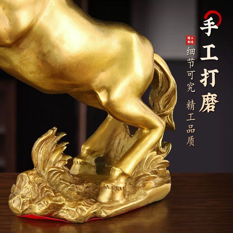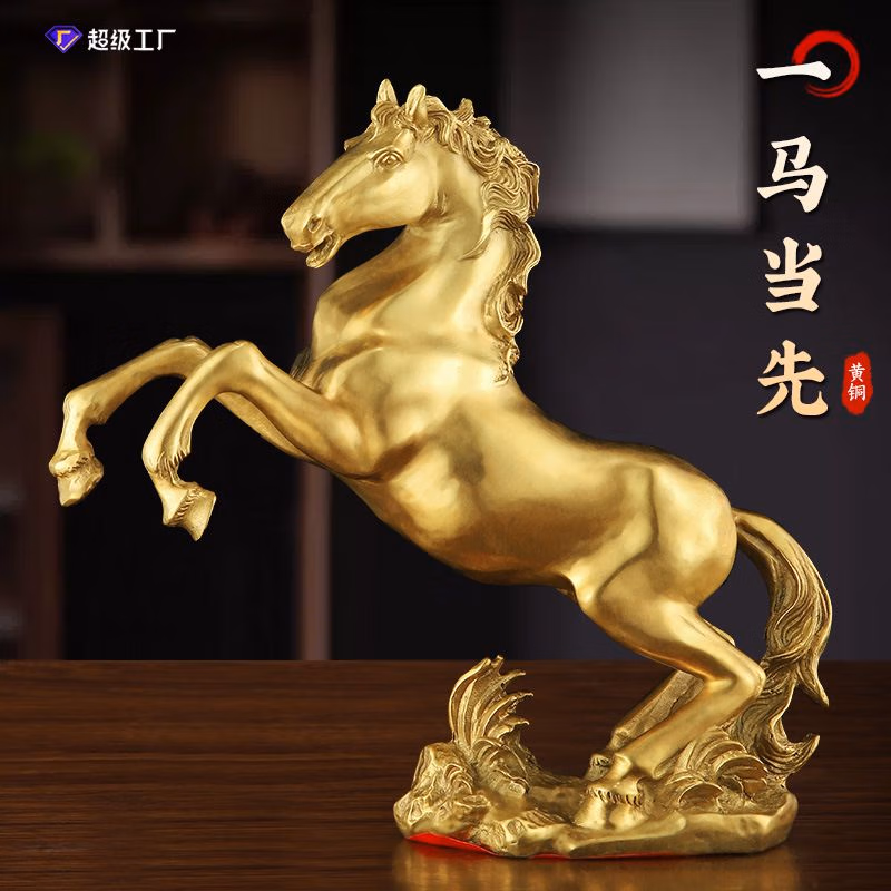 纯黄铜马摆件马到成功十二生肖马摆件招财办公室开业客厅玄关礼品 一马当先30CM