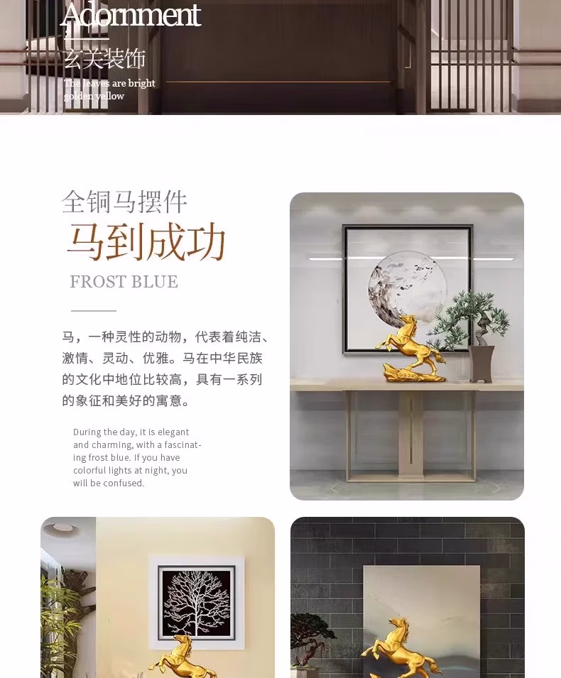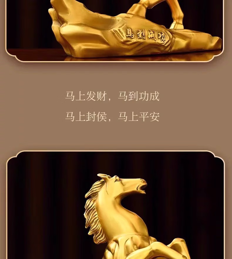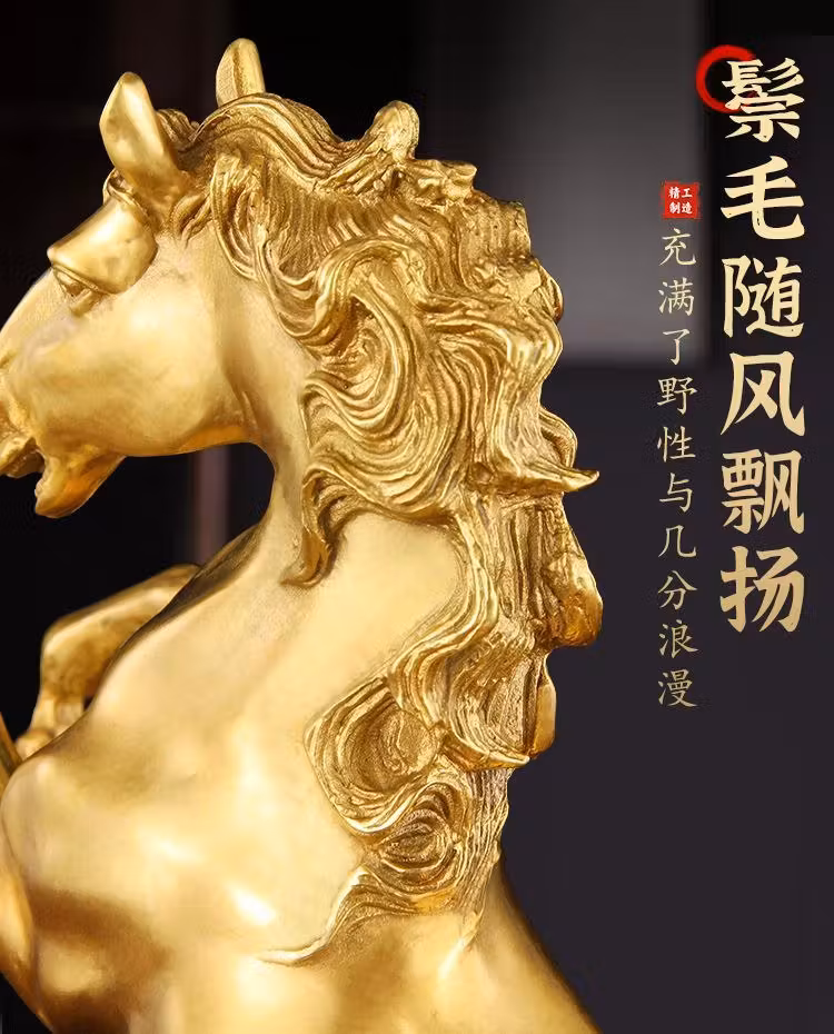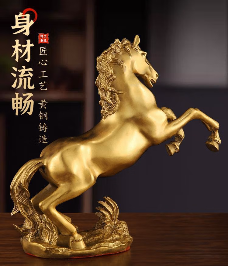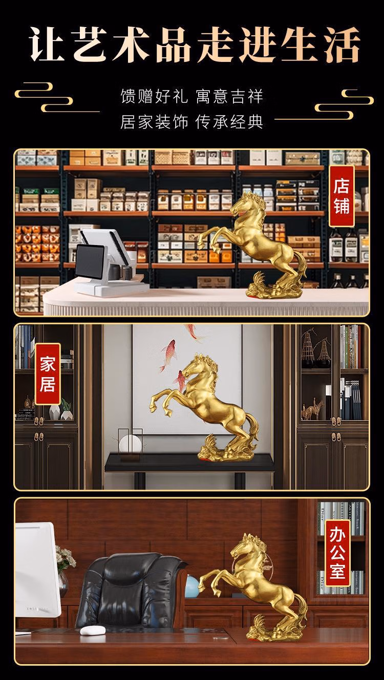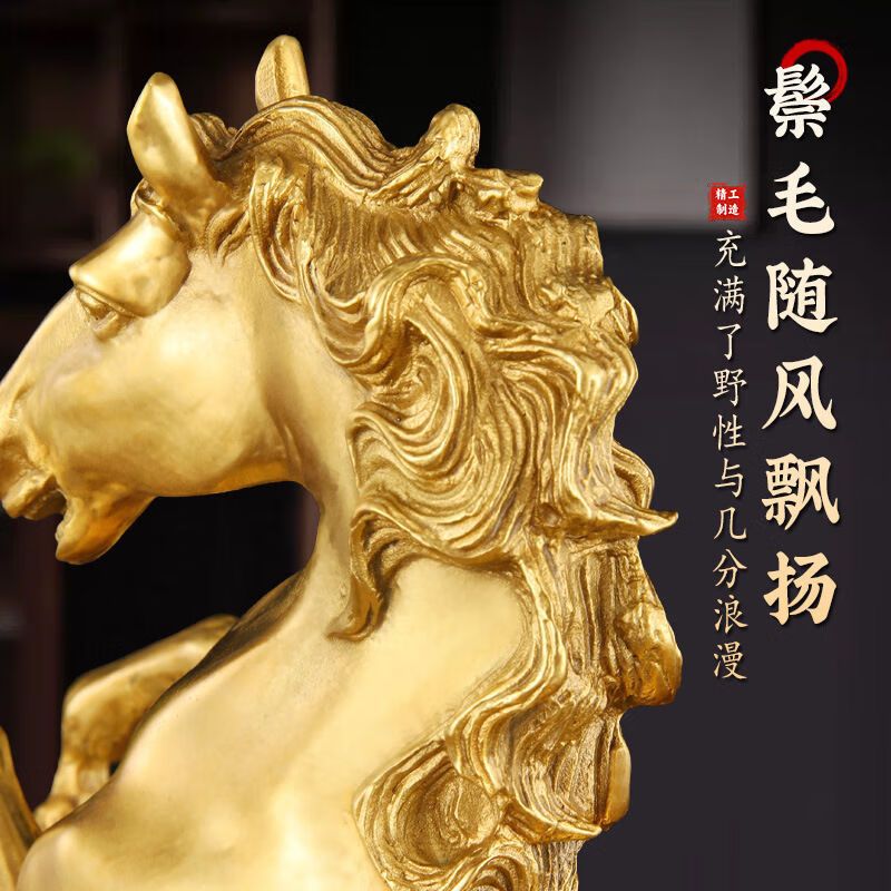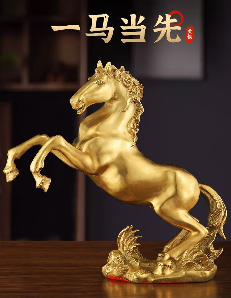 纯黄铜马摆件马到成功十二生肖马摆件招财办公室开业客厅玄关礼品 一马当先30CM